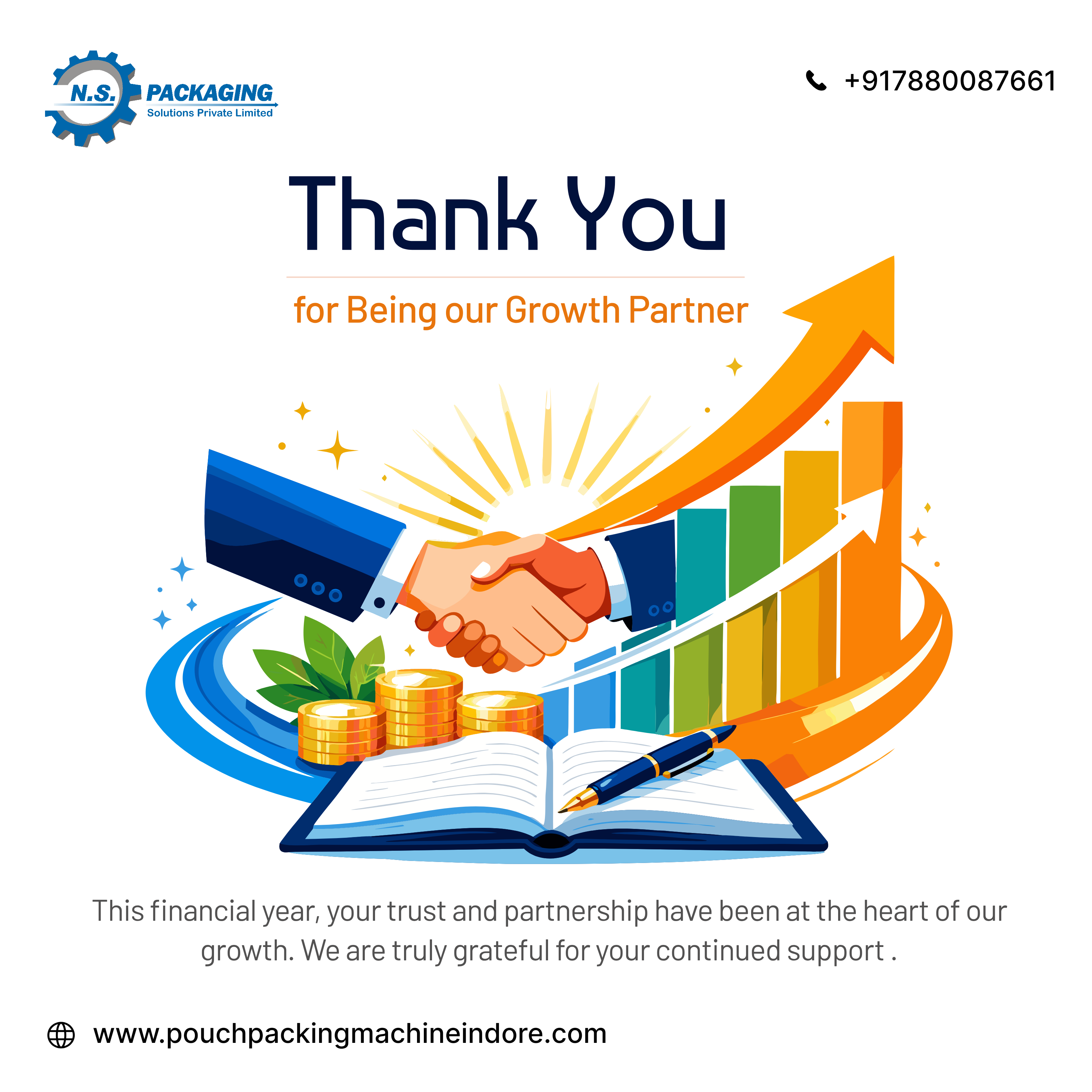 🙏📈 Thank you for being an integral part of our journey. Your trust and support have helped us grow stronger every day. We truly value you as our growth partner! ✨ #ThankYou #Gratitude #GrowthPartner #ClientAppreciation #BusinessGrowth #TogetherWeGrow #SuccessJourney #Partnership